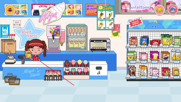 打開米加小鎮游戲頁面,然后點擊進入超市。