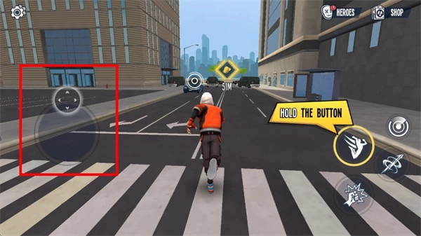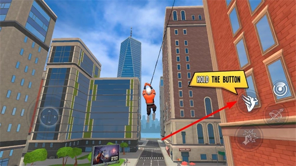 1、進入關卡后,長按對應按鈕完成場景移動,通過繩索滑行穿越城市區域,抵達目標區域。