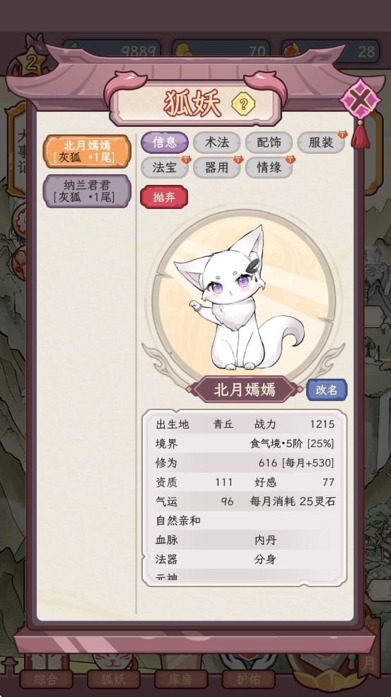 3)氣運越高的狐妖,越容易挑選高級的幻術(shù)