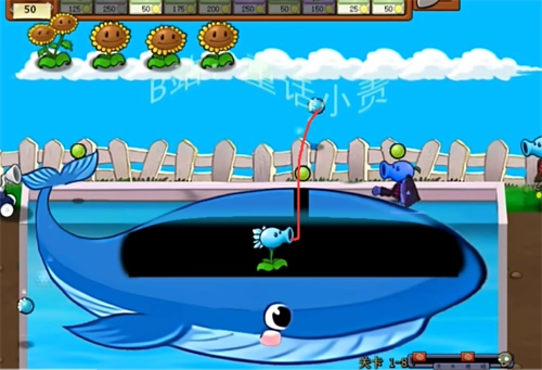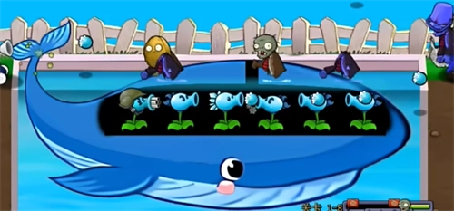 6、嘗試巧妙種植植物幫助鯨魚擊退僵尸敵人。