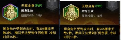 再比如7級(jí)和5級(jí)金身對(duì)比。7級(jí)時(shí)間3秒無敵,概率有30%,都比5級(jí)好,所以這種技能洗到7級(jí)才是畢業(yè)。當(dāng)然5級(jí)也夠用了。
