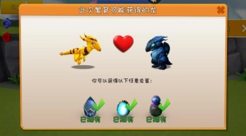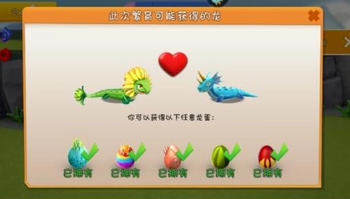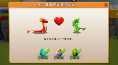 游戲當中繁育規則當中規定,子代龍必然繼承父母雙方各一種元素。