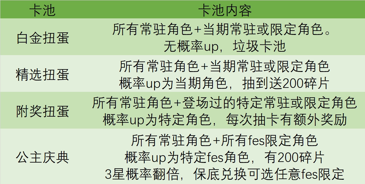 新手池和回歸池同樣屬于公主慶典(fes),但沒有碎片