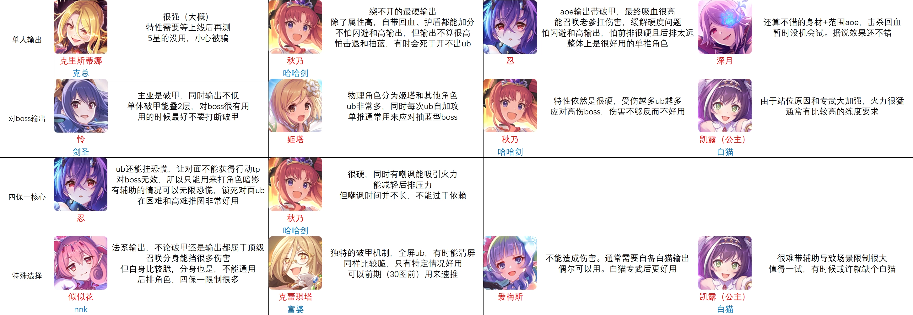 可選輔助。保命優(yōu)先,其次是破甲,如果自己思路明確,也有nnk分身吃boss技能的玩法