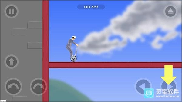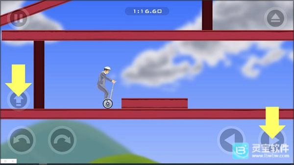 3、進入游戲后的操作十分簡單,右側按鍵負責控制前進與后退,左側的向上箭頭用于跳躍,下方的兩個按鍵則可以操控人物前傾和后仰。