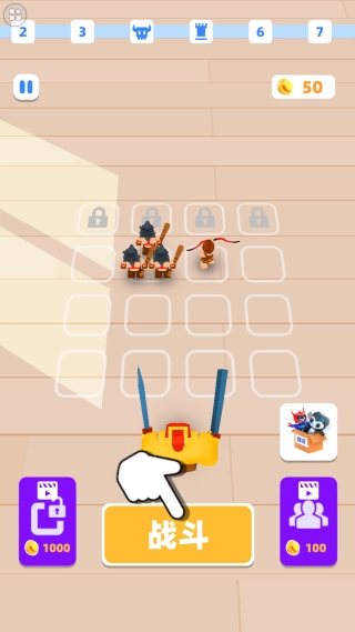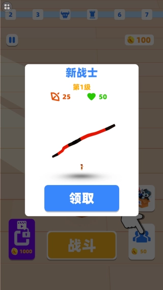1、點擊開始游戲后,你可以消耗累積的金幣來解鎖更多強力戰士。