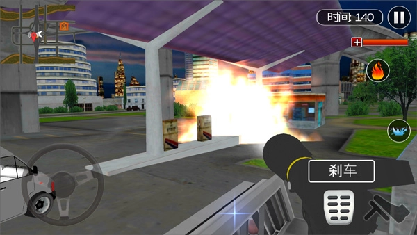 4、在去消防站的途中玩家將會接到火警電話,這時候玩家需要在規(guī)定時間內(nèi)駕駛消防車到達火警現(xiàn)場;