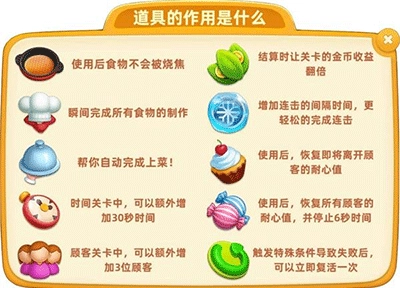 1、金幣:完成關(guān)卡可以獲得本關(guān)產(chǎn)出的金幣(雙倍加成道具、連擊均可以提高金幣的產(chǎn)出);金幣用于升級設(shè)備和食材。