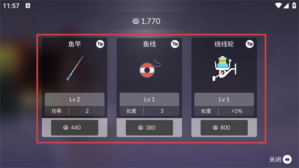2、建議優(yōu)先升級【魚竿】來提升釣魚功率,之后再依次升級【魚線】的長度和【繞線輪】的屬性,通過合理分配資源逐步增強整體釣魚能力。