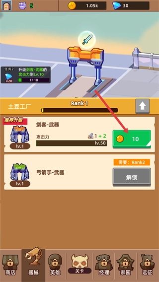 2、選擇目標武器,點擊對應的金幣按鈕消耗資源進行升級。