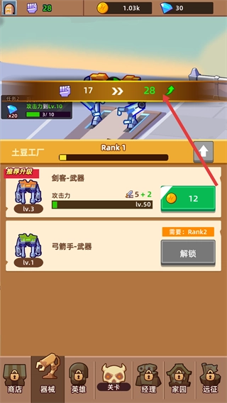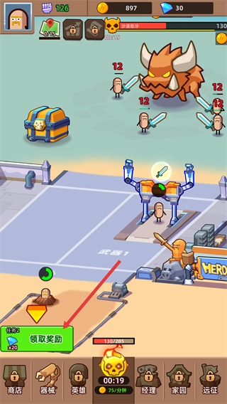 4、完成任務(如升級武器攻擊力至指定等級)后,返回主界面點擊【領取獎勵】按鈕。