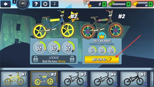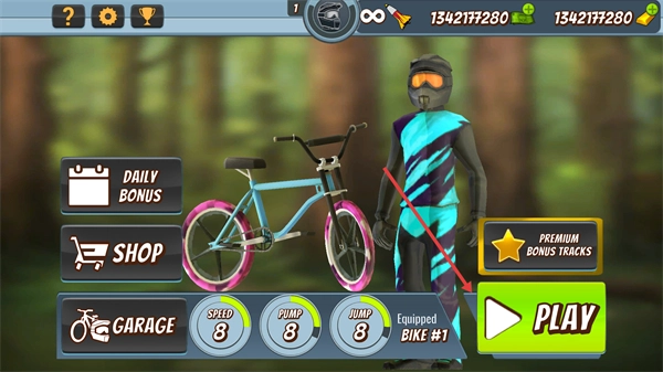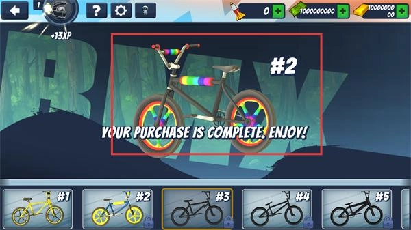 2、修改版自帶,可直接解鎖各類炫酷自行車、特技裝備與賽道,無需重復比賽積累,快速開啟高階玩法。