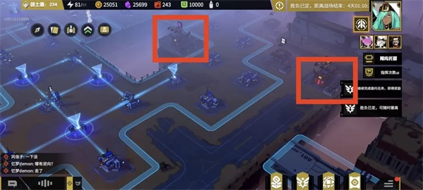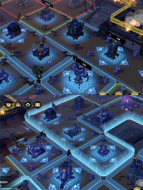 2、分基地能提供一塊3×3的地塊,每個地塊會生成4個角炮。此外,分基地內還配備了大量小機器人,一旦其范圍內遭受攻擊,這些小機器人就會出動參與戰斗。而且分基地升級后,還可以對周邊地塊施加增益效果。