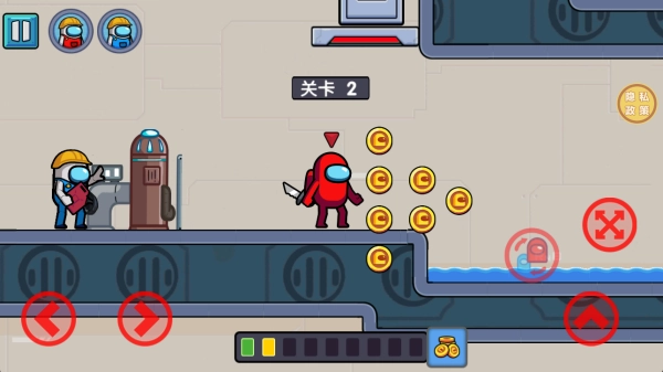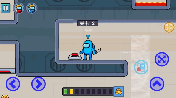 1、角色移動可通過屏幕左側的虛擬按鍵來控制,而屏幕右側的按鍵則分別用于切換角色、完成跳躍動作以及進行互動操作。