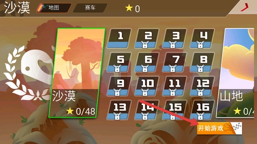 2、建議先從第一關的沙漠地圖開始冒險,當成功解鎖所有沙漠關卡后,便可開啟更具挑戰的山地冒險之旅。