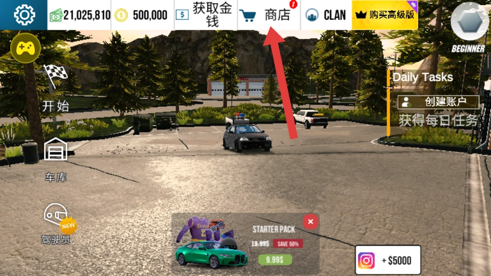 1、點(diǎn)擊【商店】,利用購(gòu)買(mǎi)心儀的車(chē)輛,提升駕駛體驗(yàn)。