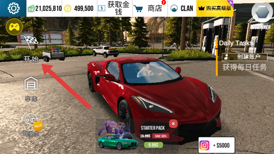 3、購(gòu)買(mǎi)車(chē)輛后點(diǎn)擊【開(kāi)始】,進(jìn)入駕駛場(chǎng)景,開(kāi)啟支持下的停車(chē)挑戰(zhàn)。
