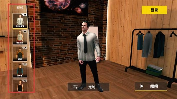 1、進(jìn)入角色界面后,在左側(cè)的【預(yù)設(shè)】欄中挑選你心儀的裝扮;選定后,可點(diǎn)擊【定制】按鈕進(jìn)行細(xì)節(jié)調(diào)整,調(diào)整完畢再點(diǎn)擊【繼續(xù)】按鈕即可推進(jìn)流程。