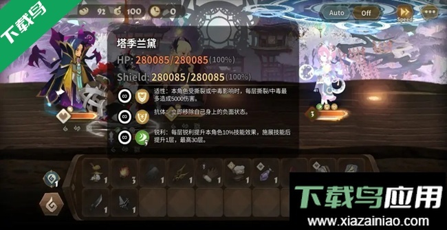 8、關卡11-3致命弱點,第一波要求利用中毒削弱對手。僅攻擊形態(tài)下的戴安娜被動可施加中毒,觸發(fā)兩次被動后戰(zhàn)斗自動結束。操作順序為:多次黑二整理魂盤,金一,調整魂塊,再次調整魂塊,金二需擊中小怪否則重開,白一,金一,白一,金一。