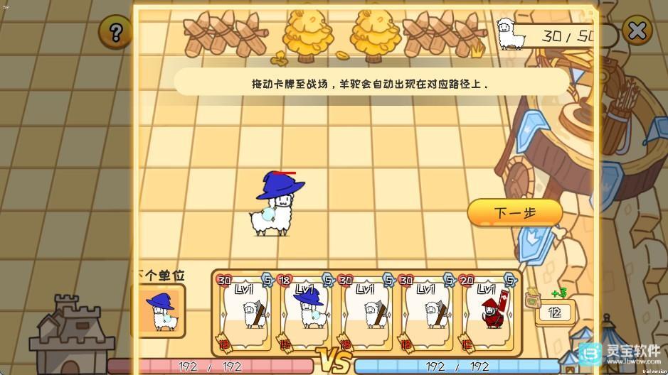 2、拖動卡牌到戰場上抵御對方羊駝、進攻敵方防御塔