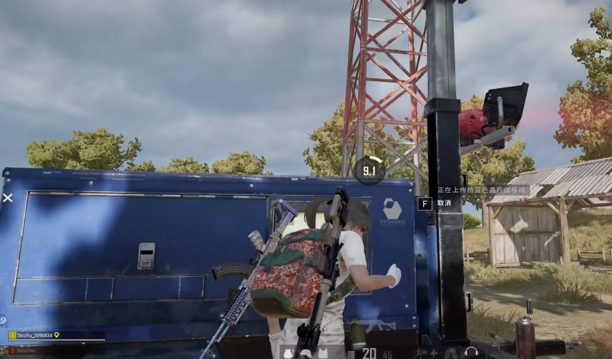 2、找到地圖中的“藍色晶片信號塔”,然后把隊友的“藍色晶片”上傳給信號塔。