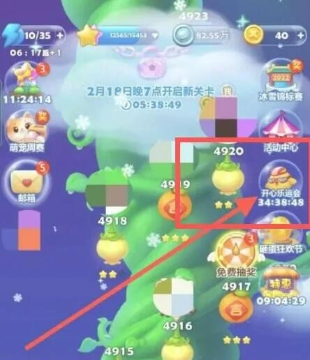 1、打開開心消消樂,點擊首頁的開心樂運會活動。