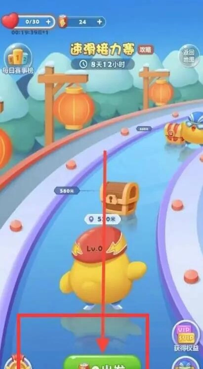 3、點擊“出發”按鈕即可。不過需要注意的是,開心消消樂中的開心樂運會活動僅在冬奧會期間開放,目前已經結束了。