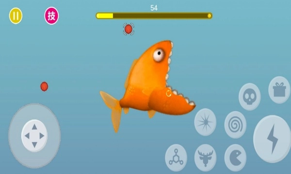 1.玩家可借助虛擬搖桿或手指滑動屏幕來操控小魚的游動方向,當(dāng)小魚靠近體型更小的目標(biāo)時會自動將其吞食。