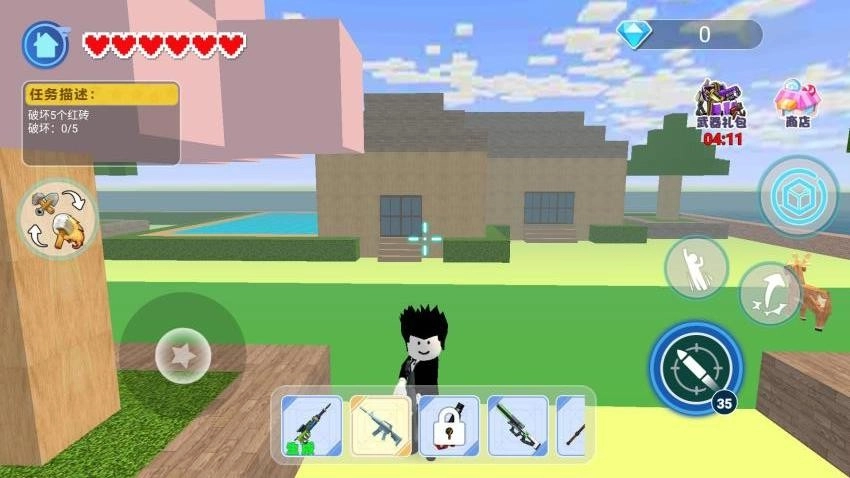 1、根據任務的指引找到紅磚所在的位置,使用鐵鏟或是錘子來破壞它們。