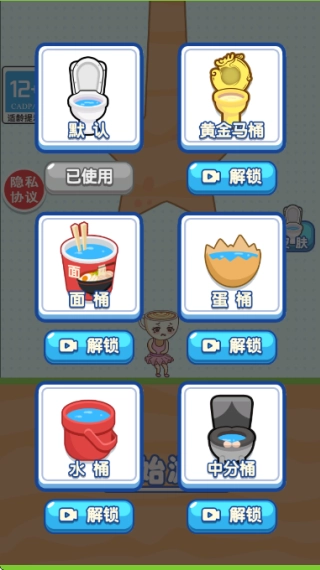 2. 如下圖所示,在皮膚商城里能夠解鎖多款個(gè)性化的馬桶皮膚。