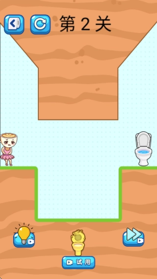 1.是一款以創(chuàng)意解謎為核心的益智闖關(guān)游戲。玩家將引導(dǎo)角色在充滿障礙的場(chǎng)景中,尋找前往馬桶的正確路徑。