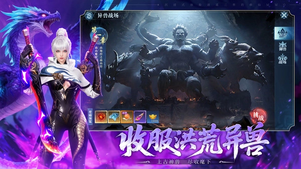 3、捕捉并培育上古神獸,借助強大的異獸加成來應對后續挑戰,更有機會制定獨特的作戰策略,全程無任何限制約束。