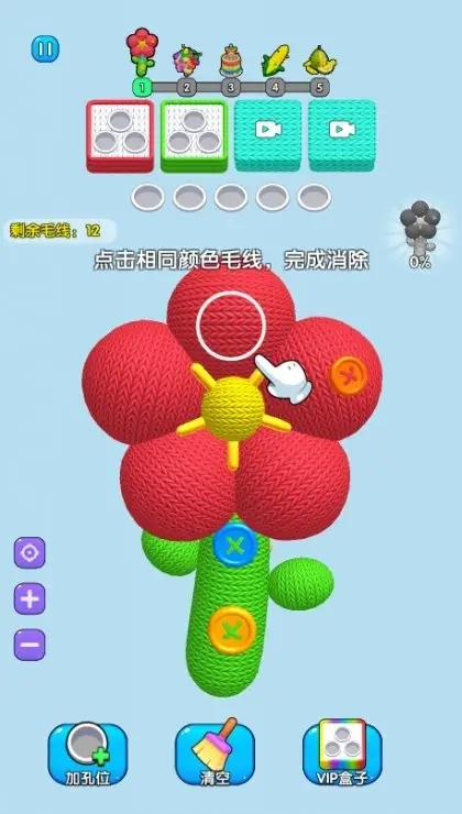 1.點擊相同顏色毛線,完成消除。