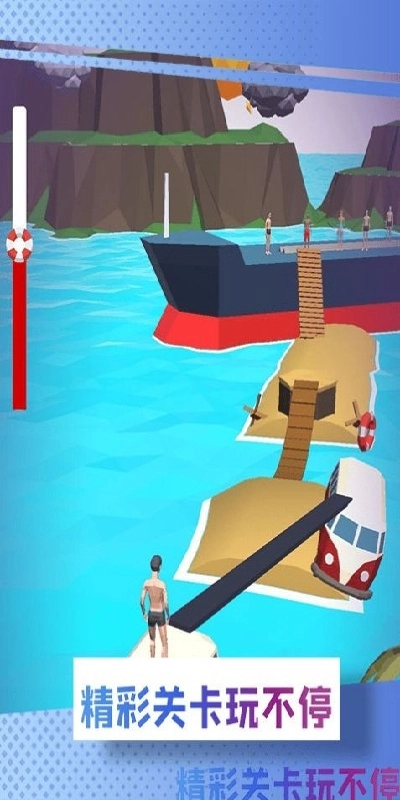 2、在角色逃亡的過(guò)程里,玩家得去收集沙灘上四處散落的彩色救生圈,每成功收集一次,不僅能累積相應(yīng)的積分,還會(huì)為屏幕下方的能量條補(bǔ)充能量。