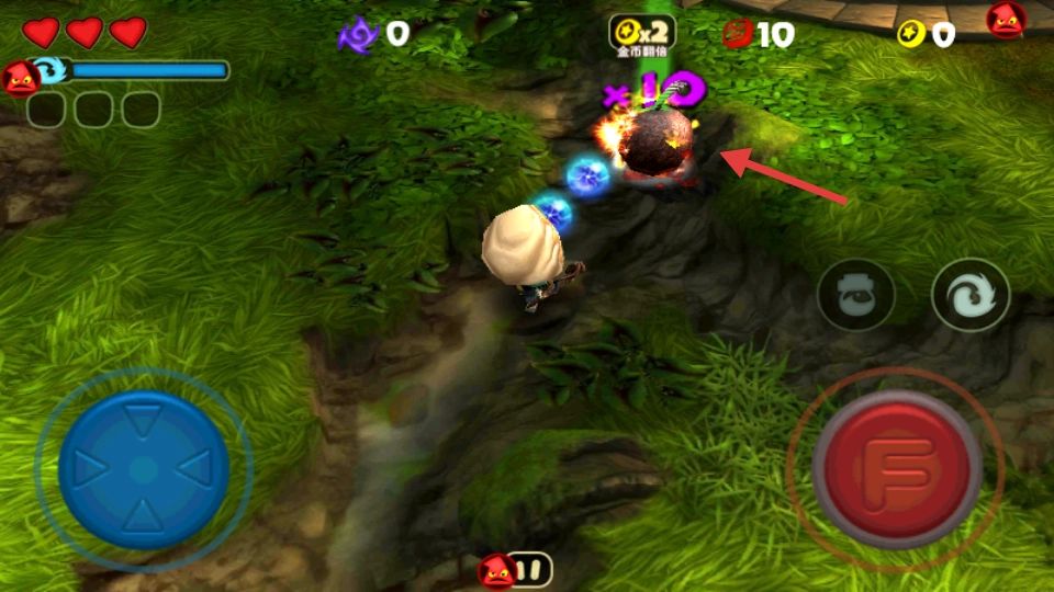 3、游戲中遇到帶火焰的【x10】道具要及時(shí)撿取,能獲得臨時(shí)增益,提升戰(zhàn)斗能力。