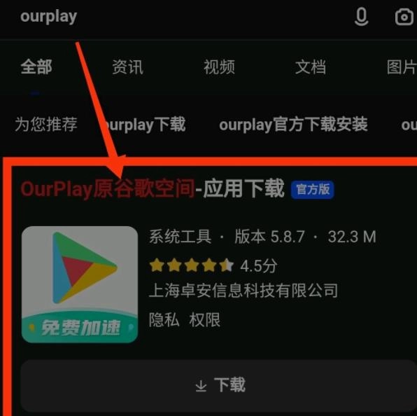 2、進入ourplay,待谷歌套件安裝好后,登錄ourplay帳號和谷歌帳號