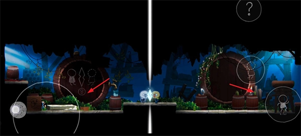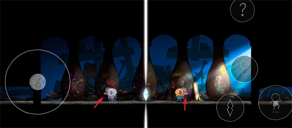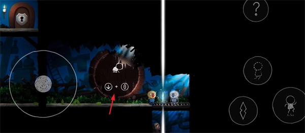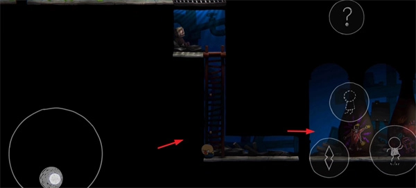1、左下角的虛擬搖桿可操控主角移動,點擊右下角的按鍵即可切換角色。