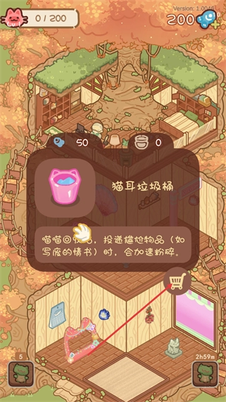 4、在商場點擊貓耳垃圾桶道具,點擊下方的購物車按鈕進行購買,可使用該道具提升游戲內(nèi)操作效率。