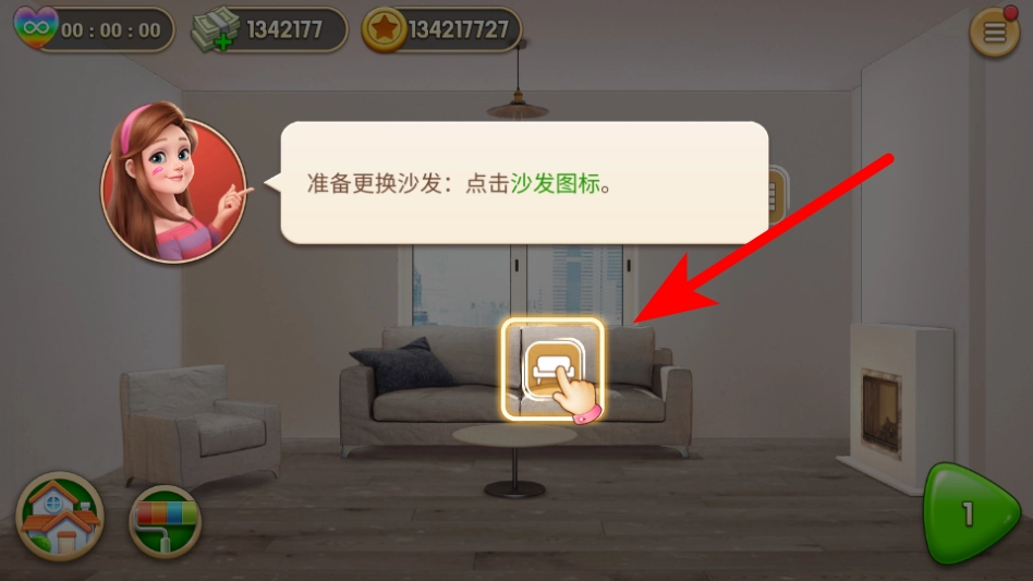 1、在裝扮界面點擊沙發對應的圖標,進入沙發的更換選擇界面,準備替換當前家具。