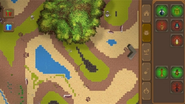 1、進入游戲后創建一個全新的世界,挑選草地、土壤這類基礎地形,明確劃分出可以通行和無法通行的區域,搭建起適合昆蟲生存的基礎環境。