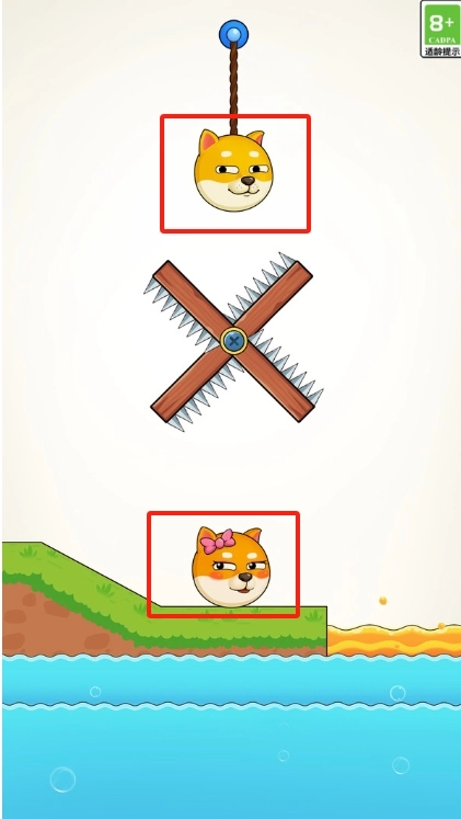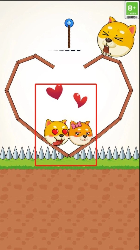 1、進入游戲后,通過割斷繩子,讓兩只狗頭相聚。
