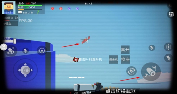 1、操控角色切換武器,攻擊敵方單位,這是推進冒險的基礎操作,積累擊殺數與經驗,提升等級。