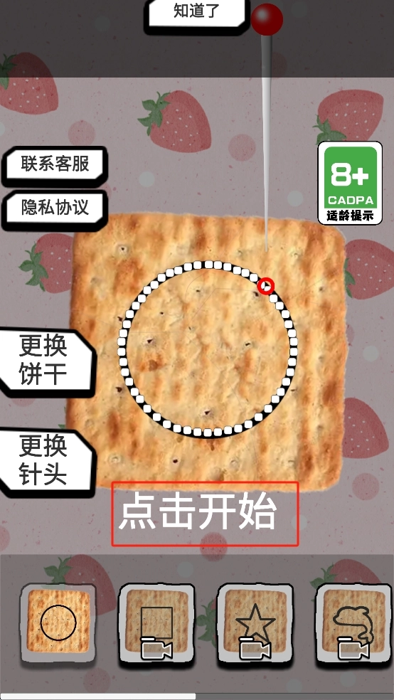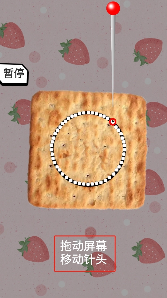 3、拖動屏幕移動針頭,嘗試將針穿過餅干而不破裂。