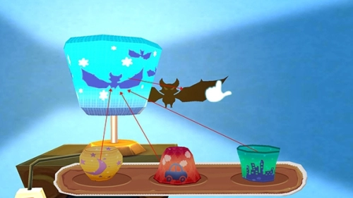 3、點擊下方的蝙蝠臺燈罩,就能捕捉蝙蝠影子了;另外兩個燈罩,點擊它們的影子會有變化,但無法完成捕捉操作。