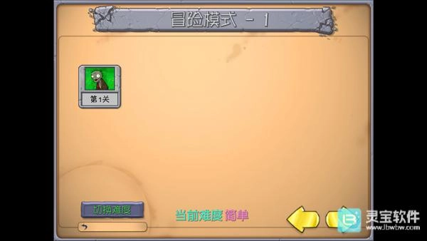 2、接著選擇關卡,下方可切換難度,支持簡單、正常、困難三種難度;