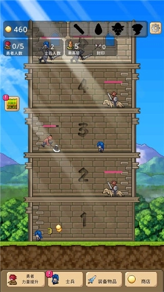 3、購買裝備,我們是一定要給自己的小人購買裝備的,比如奮斗藥水等等,這樣玩家才能快速的獲得這些攻擊的勝利,不然可能一個樓層玩家需要刷很久很久,這樣就很煩躁了