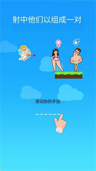2、進入關卡后,用手指滑動來調整射擊方向,瞄準場景里的角色射出愛心箭。只要成功射中,這些角色就會配對成隊,開啟互動環節。