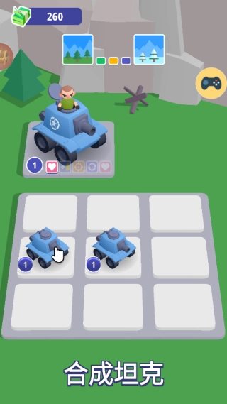 1、在關卡準備階段,你可以購買坦克,相同的坦克能夠通過合并來升級,從而得到更強大的高階坦克。