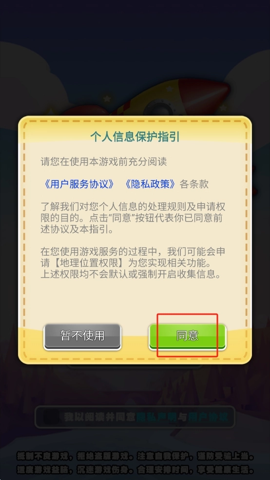 1、閱讀并同意個人信息保護指引,即可開始游戲。