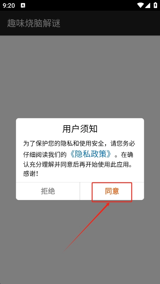 1、閱讀并同意用戶須知和隱私政策,以開始游戲。